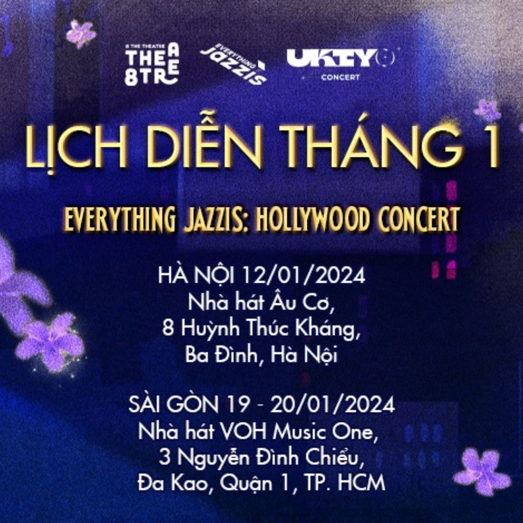 Hà Nội (Ngày 12/01/2024): https://8thetheatre.com/tc-events/everythingjazzis-hollywood-hn1201/