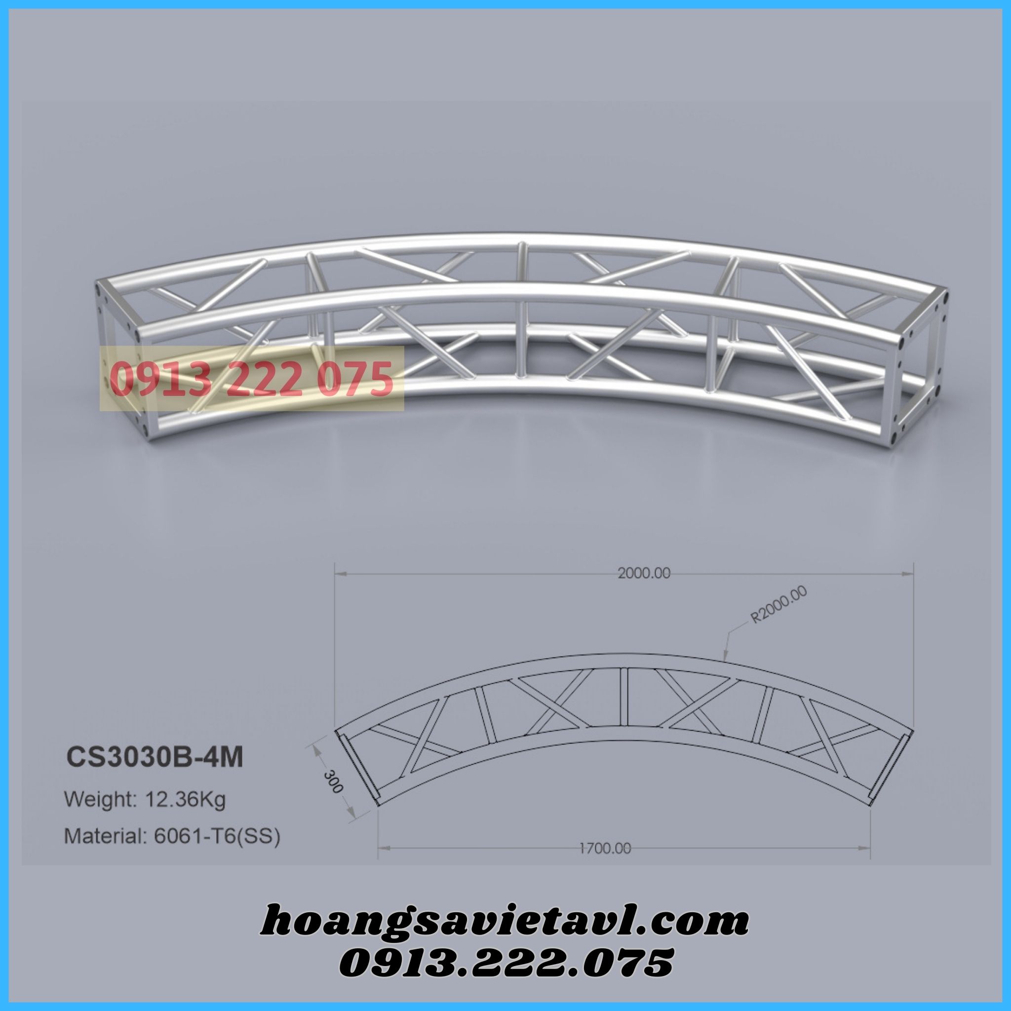 Thông số kỹ thuật Khung Truss Nhôm Cong 300x300mm bắt ốc DA3030B45_R2
